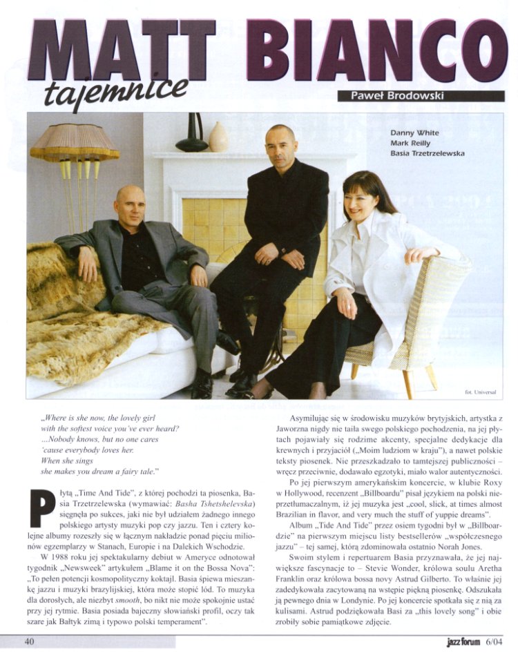 Matt Bianco w dziale Audio/Video zamieszczono wywiad z Basią,