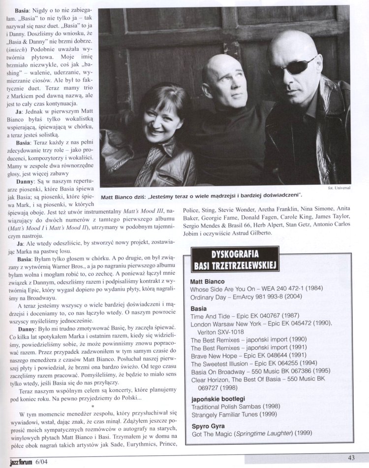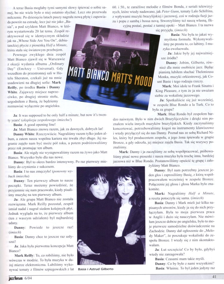 i wywiad z Basią i chłopakami z Matt Bianco): okładka,